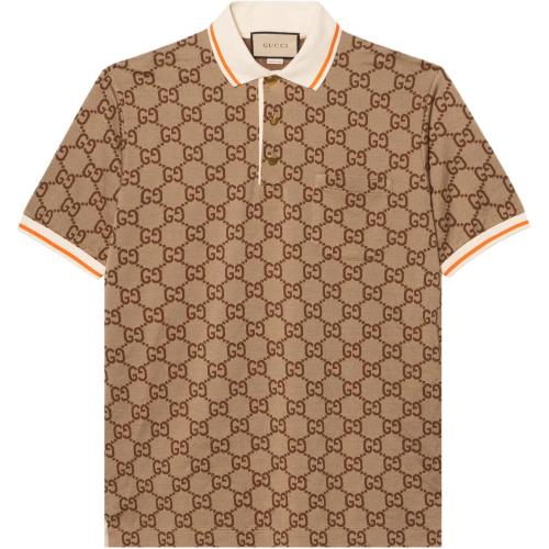 GUCCI Lido SS23 Logo Polo Мужская рубашка Gucci с короткими рукавами и полосатой отделкой, бежевая.