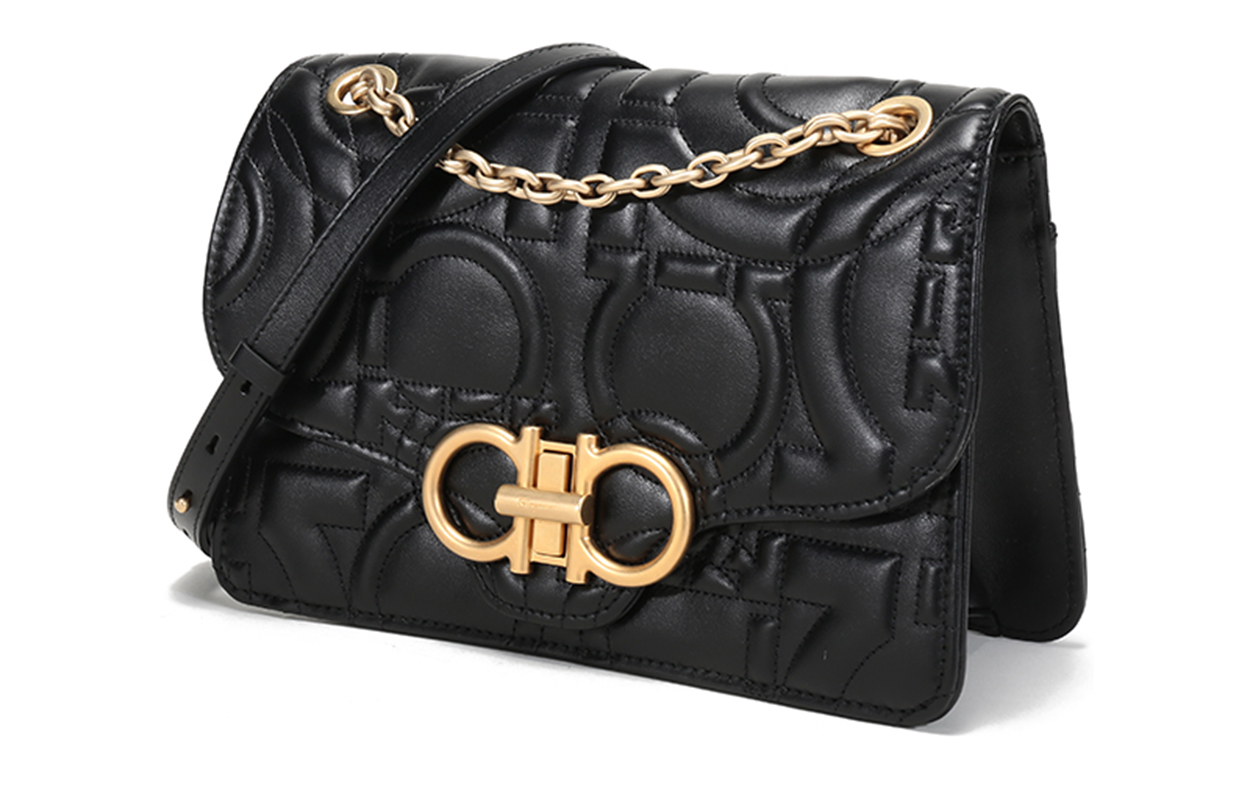 FERRAGAMO QUILTING 菲拉格慕 牛皮 单肩包 女款 黑色