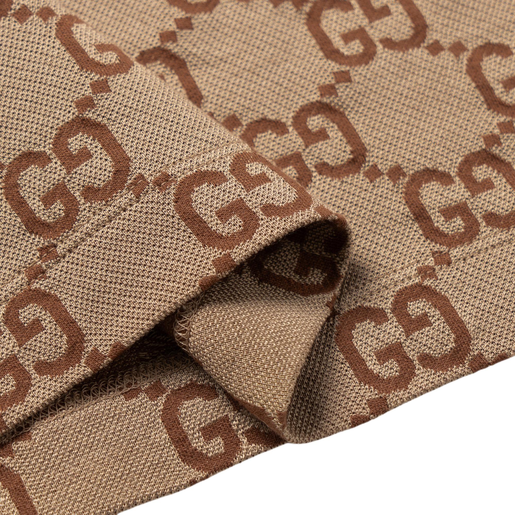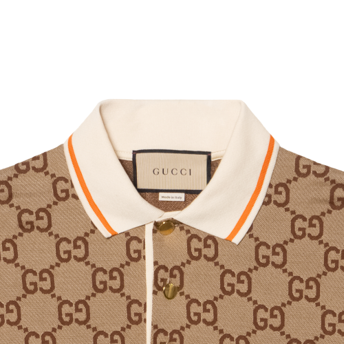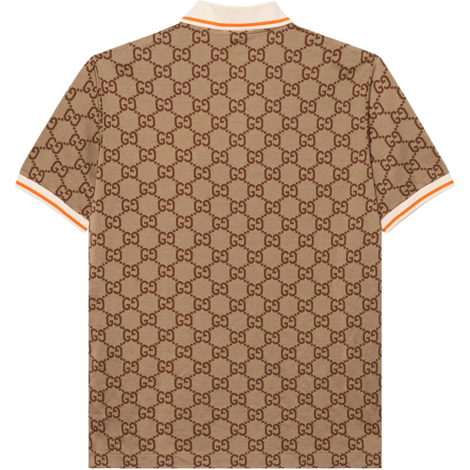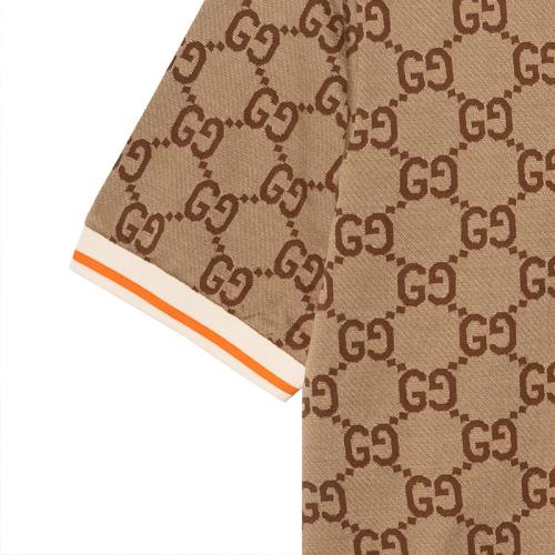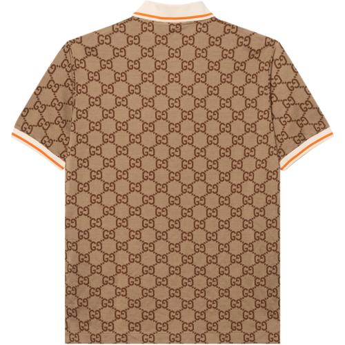 GUCCI Lido SS23 Logo Polo Мужская рубашка Gucci с короткими рукавами и полосатой отделкой, бежевая.