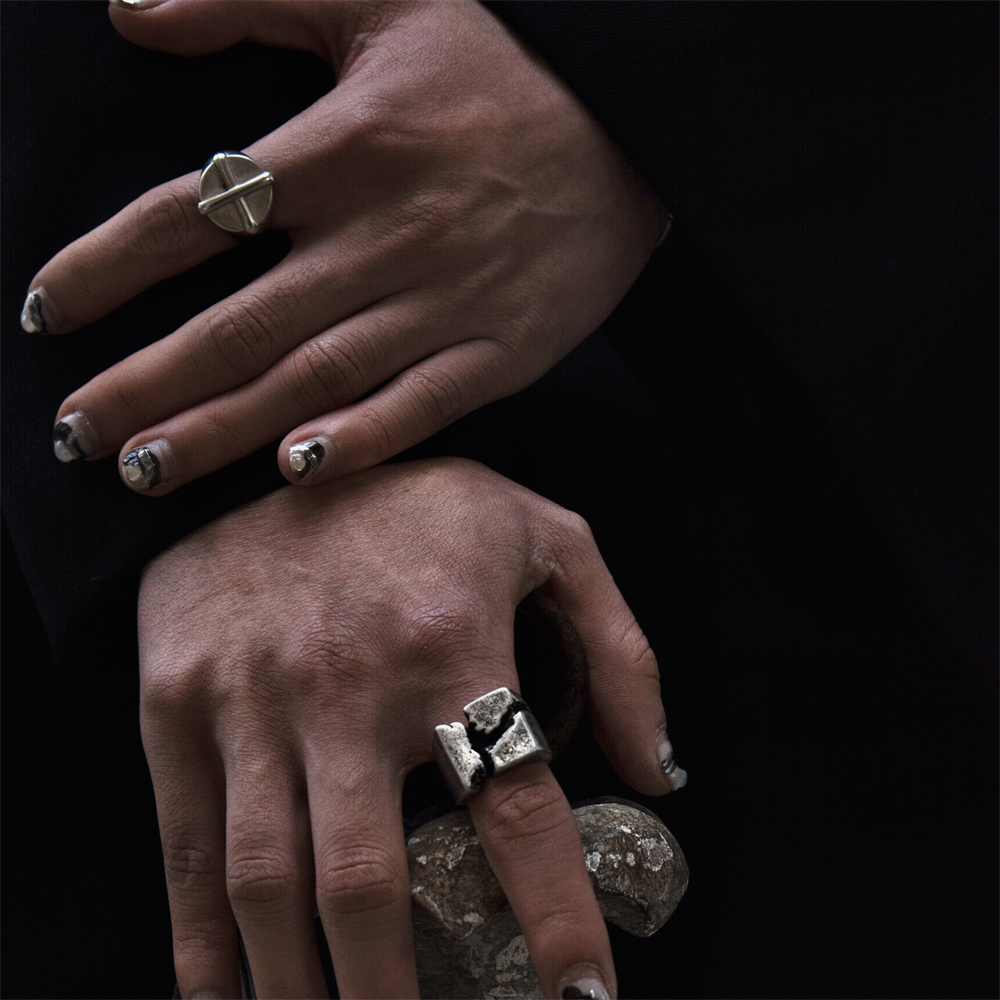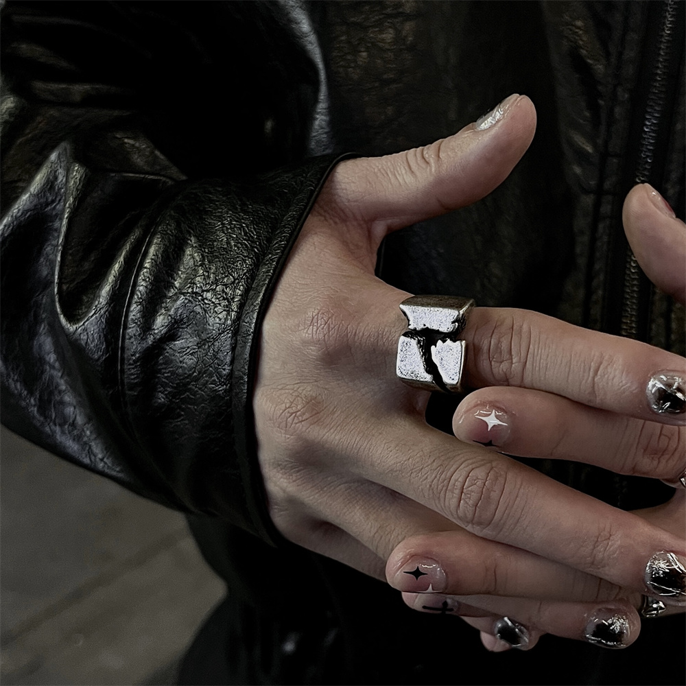 Innerraum 925 Кольцо с эффектом трещины камня, тайское серебряное покрытие, унисекс, для пары.
