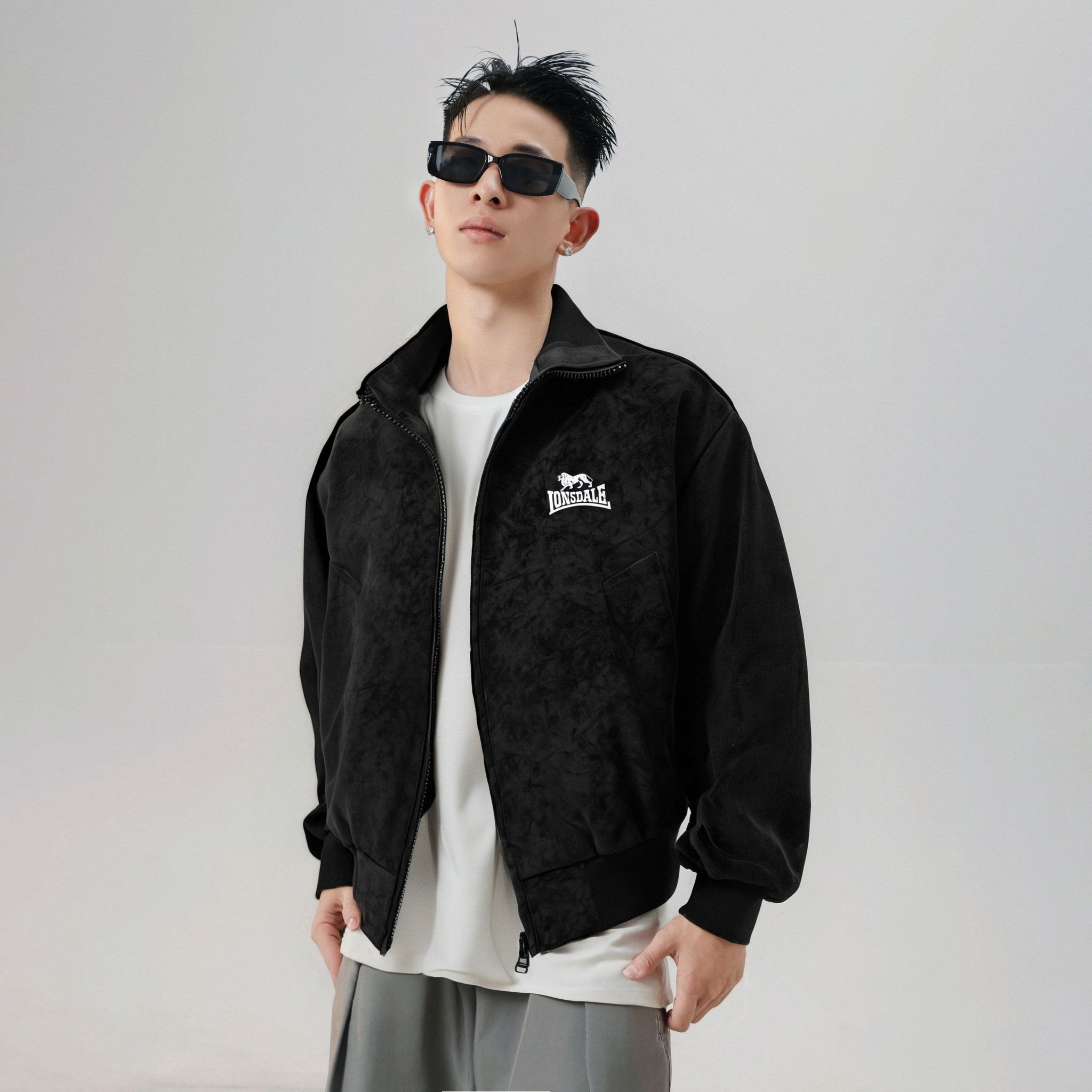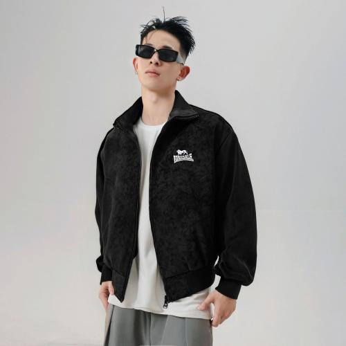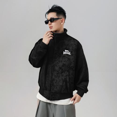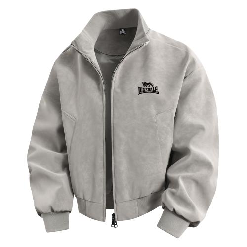 LONSDALE Куртка Longshidael в стиле ретро, минималистичная, структурированная, удобная, свободного кроя, с воротником-стойкой из материала, похожего на замшу, на молнии, унисекс.
