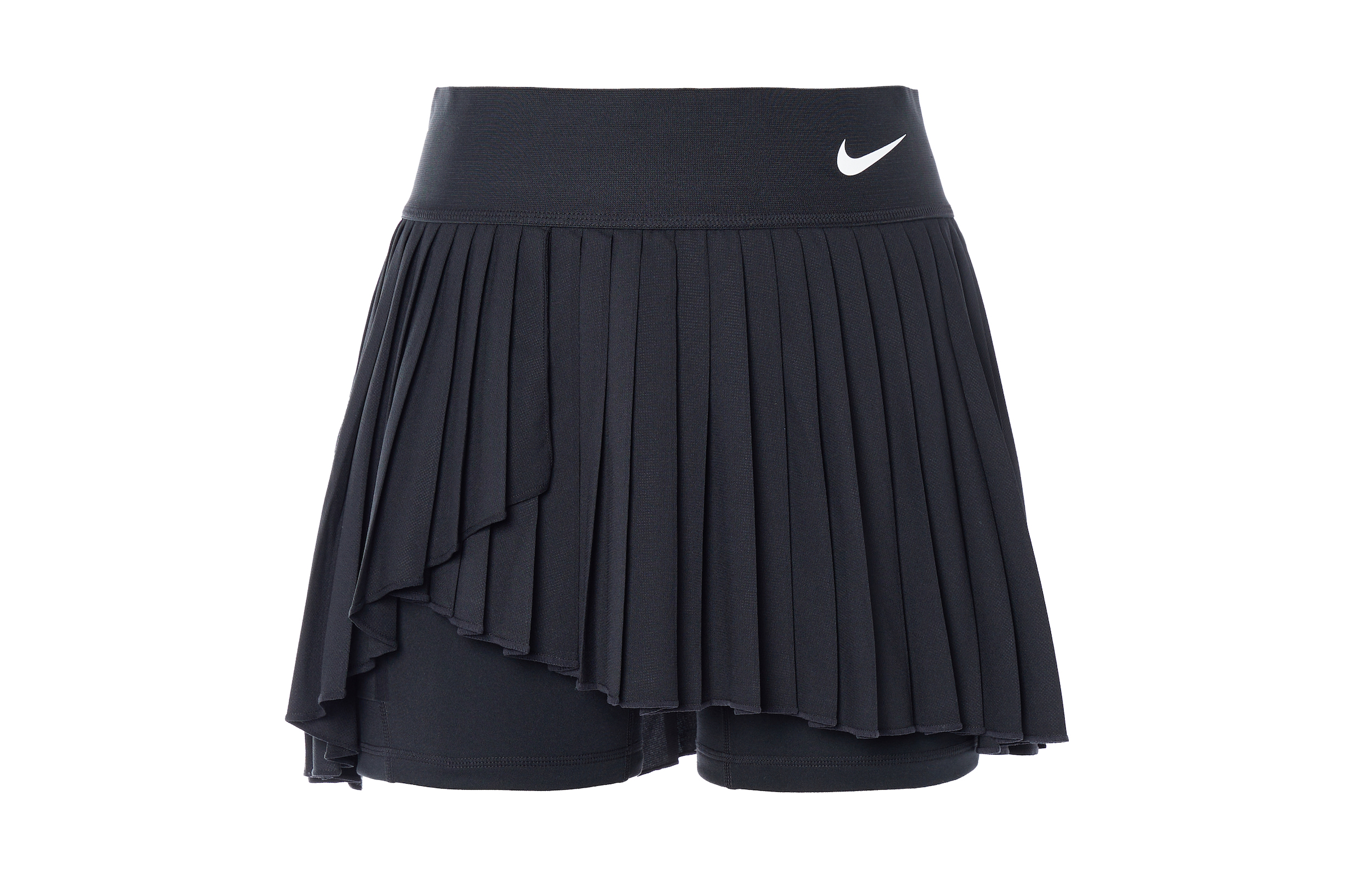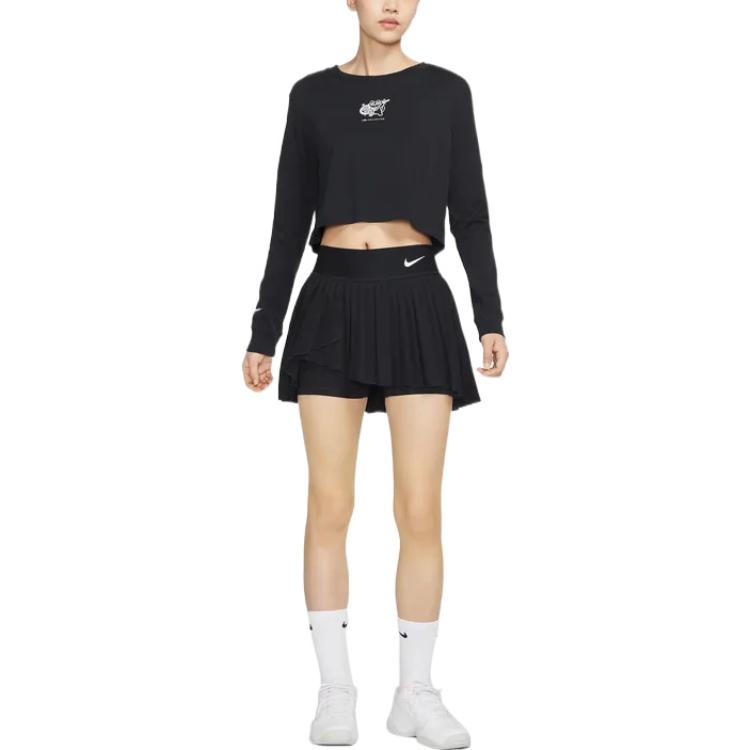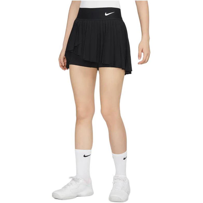 Nike Dri-Fit Advantage Logo Быстросохнущая однотонная мини-юбка с принтом, неровным краем, средней посадкой, спортивная, удобная, в стиле теннисной, плиссированная, повседневная, женская, черная.