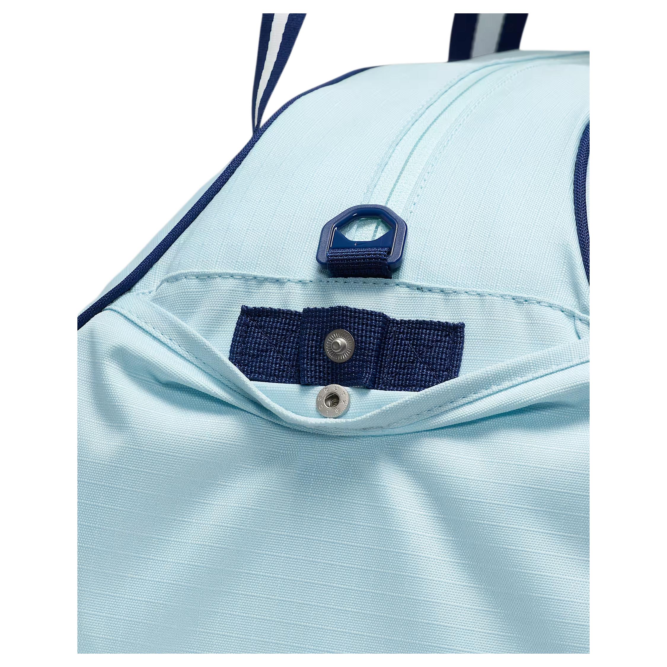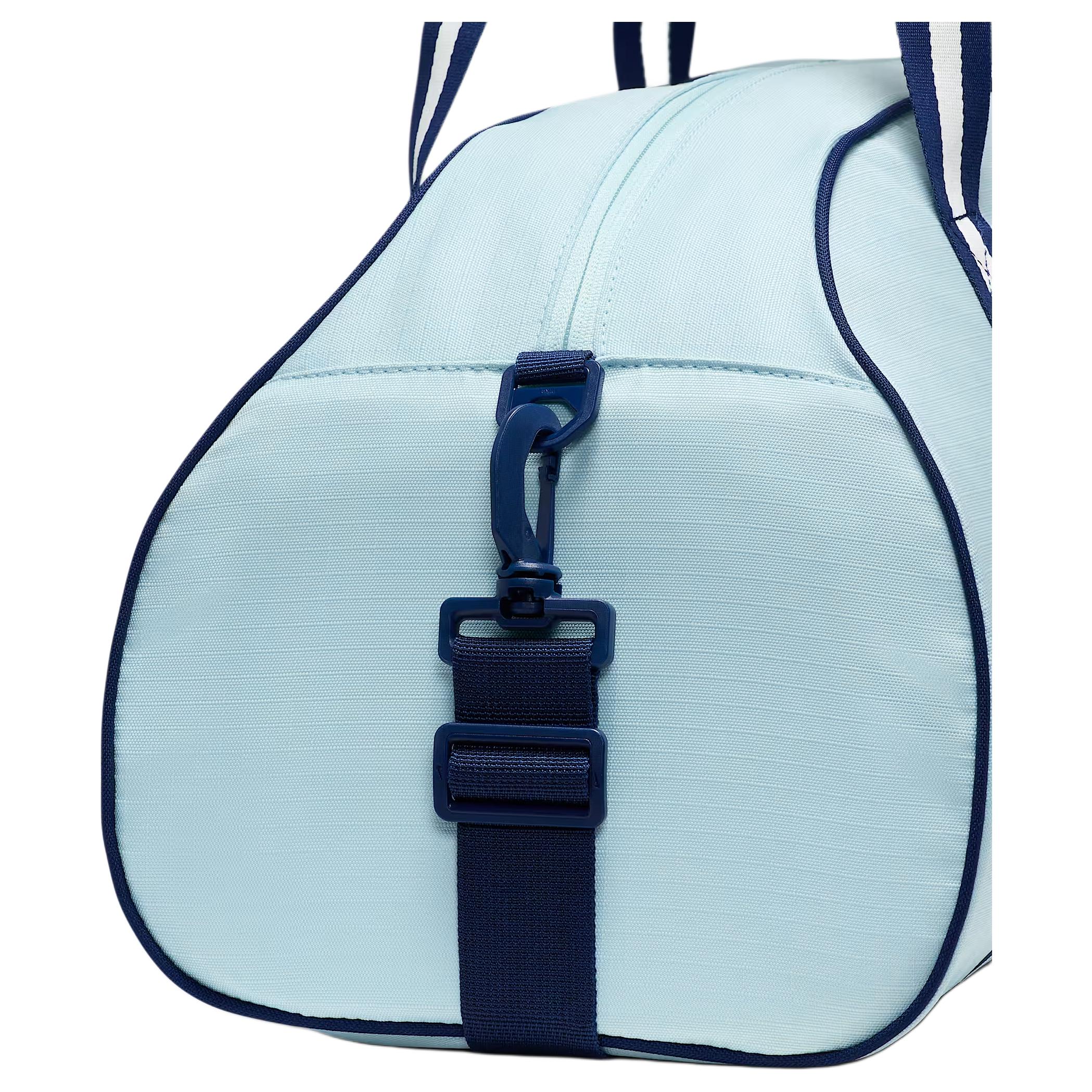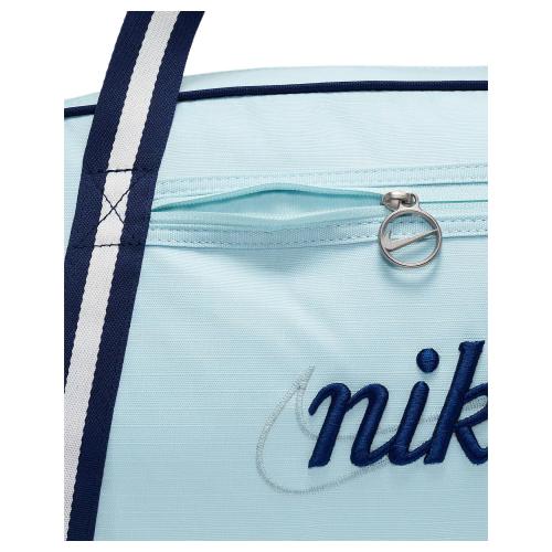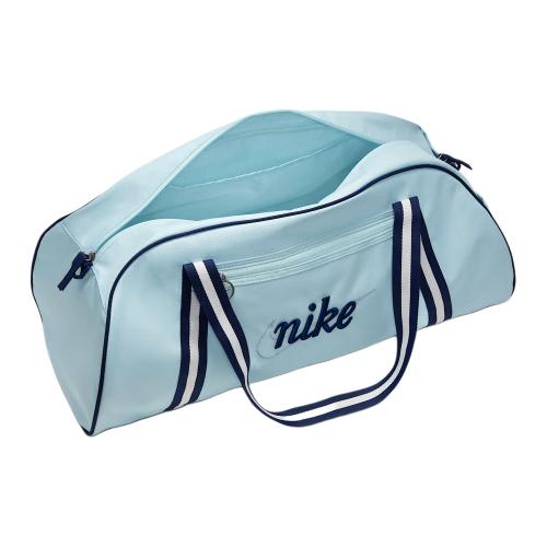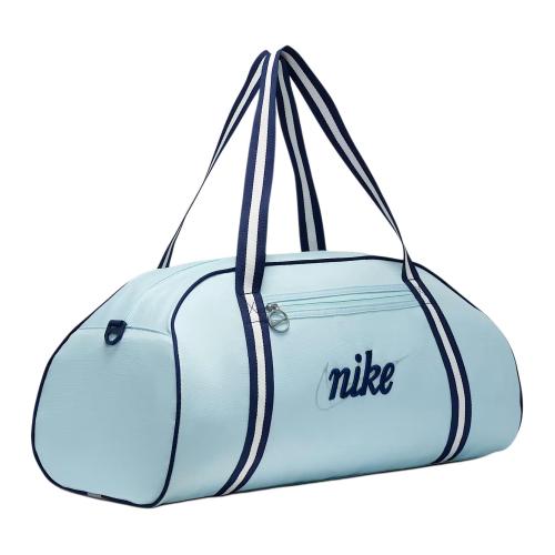 Nike Gym Club 24L Logo Вместительная спортивная сумка из полиэстерного волокна с вышивкой, унисекс и для пар, дизайн в стиле пэчворк цвета ледниковой синевы с ажурными деталями.