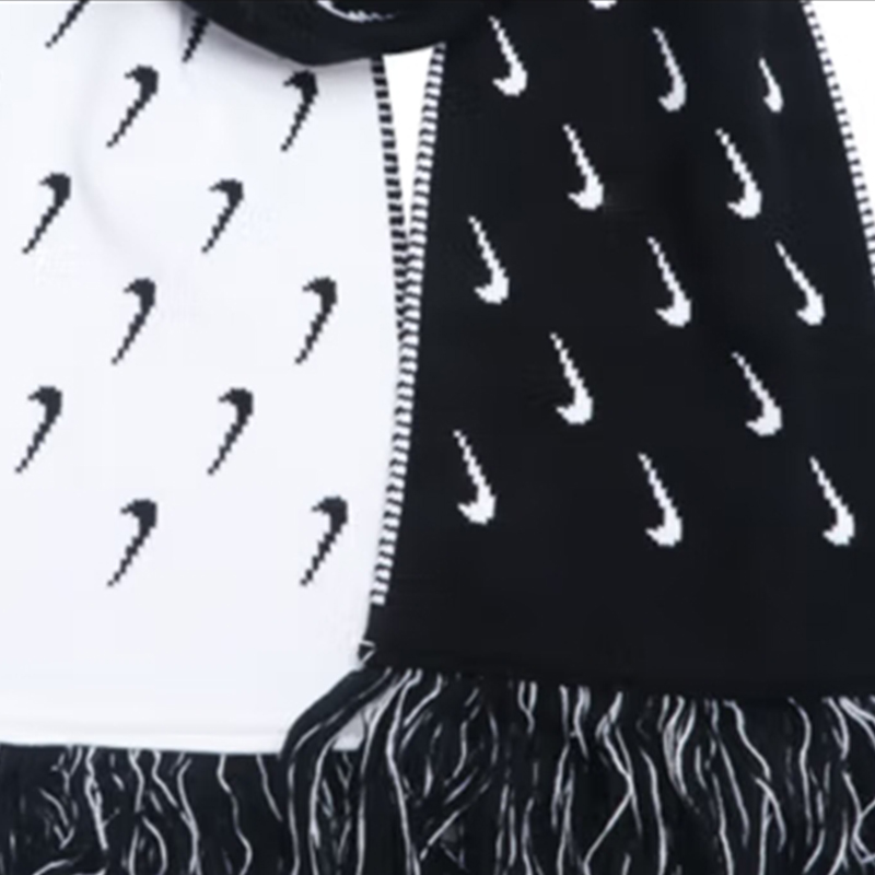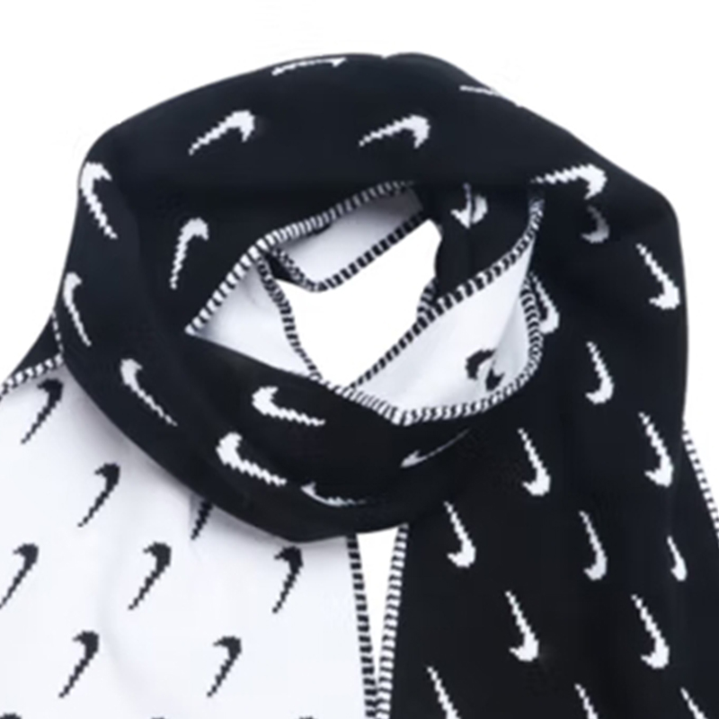 Nike Swoosh Двусторонний черно-белый вязаный крючком утолщенный теплый шарф из акриловой шерсти, унисекс и подходит для пар.