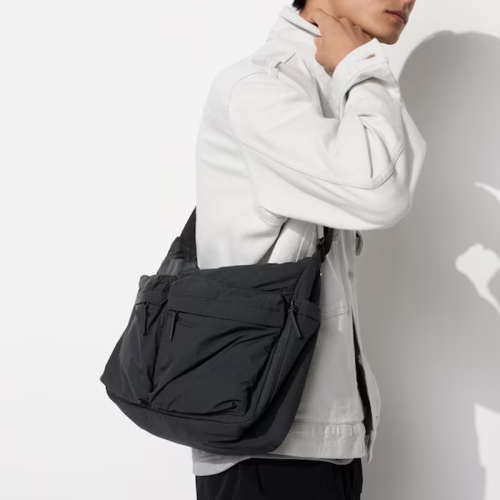 UNIQLO Повседневная водоотталкивающая нейлоновая сумка Uniqlo на плечо/через плечо, универсальная, черная